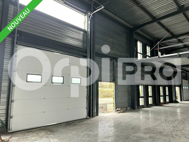 Le local dispose d'une dalle béton, d'une hauteur sous plafond de 7,20 m, d'une porte sectionnelle 4 x 4 m, d'un compteur EDF triphasé, ainsi que de l'arrivée fibre et d'un éclairage intérieur.