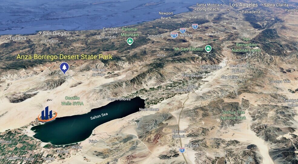 This is a 5,100-acre designated industrial zone in central Imperial County, located between State Route 86 and State Route 111. It is currently a focal point for large-scale energy and technology infrastructure.