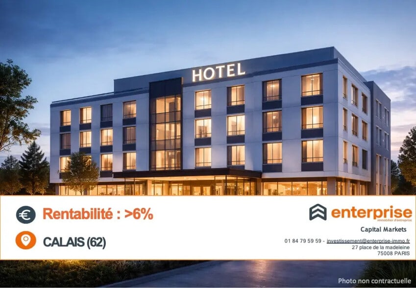 Enterprise Immobilier vous présente une opportunité d'investissement en hôtellerie à proximité de Calais : un actif neuf d'environ 2 000 m², occupé par un locataire national.