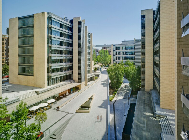 It is a business park consisting of six buildings with a solid brand image, designed by the architectural firm Rafael de La-Hoz. The “spirit of unity” prevails in its architectural concept, with the buildings located on the perimeter and a central area that acts as the heart of the park. The complex has a wide range of services: catering, day care, rest areas, parking for electric vehicles and bicycles. In addition, Parque Norte has MEETING PLACE, a meeting room rental service consisting of 4 modular spaces of different capacities that are perfectly adapted to the needs that every company needs to hold its events. The park has the LEED (Leader in Energy Efficiency and Sustainable Design) certification granted by the US Green Building Council (USGBC), one of the most prestigious certifications in the world. The certification category has been Gold in the Existing Building category, this distinction endorses Parque Norte as a sustainable complex with high levels of well-being and comfort for its occupants. In addition, the complex has the 4 Star AIS (Accessibility Indicator System) accessibility certification and the WELL Health-Safety Rating certification. Located in Arturo Soria, with direct access to the M-30, 10 minutes from Barajas airport and connected to the public transport network: metro and bus. In addition, Parque Norte has: - Operating license. - Parking with spaces for electric vehicles and bicycles. - Facility Manager. - 24-hour security and maintenance service - Daily mail delivery - Computer system for access control and centralized alarm control. - Large, bright and modular plants.