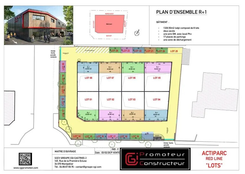Au sein d'un programme neuf composé de 8 lots à usage d'activités 4 lots disponibles à la vente à partir de 164,50 m² env. Les locaux sont livrés bruts, fluides en attente et se compose d'une partie de RDC et d'une partie en mezzanine. - Brut de décoffrage - Fluides en attente - Nbre Parkings extérieurs : 2 places / lot - Terrain clos - 2 accès à la parcelle