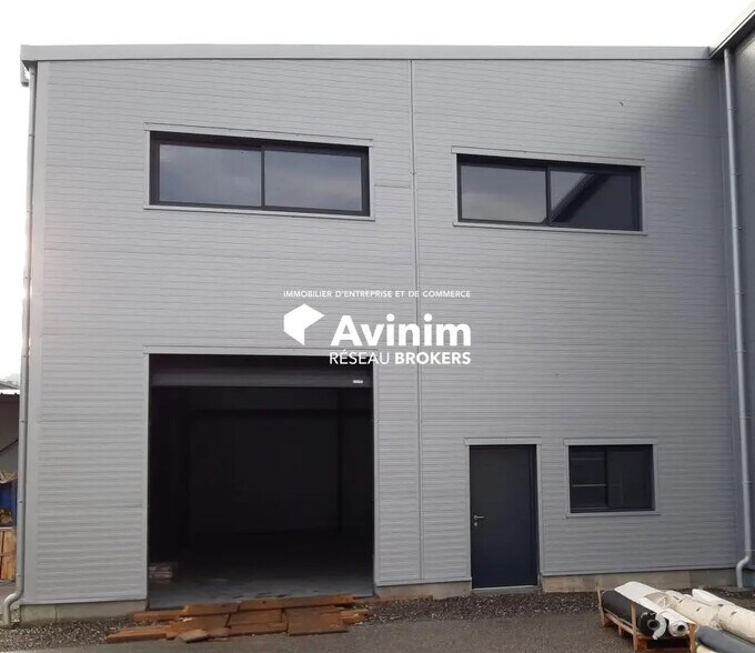 - 364 m² d'atelier, HSP de 4.35 à 8.50m sous faitage, porte sectionnelle 3x3.50H, porte de service, non chauffé.