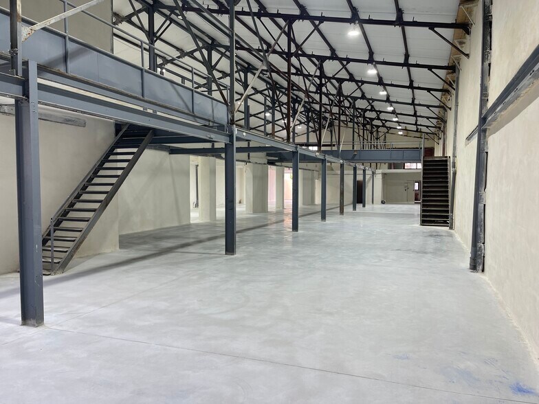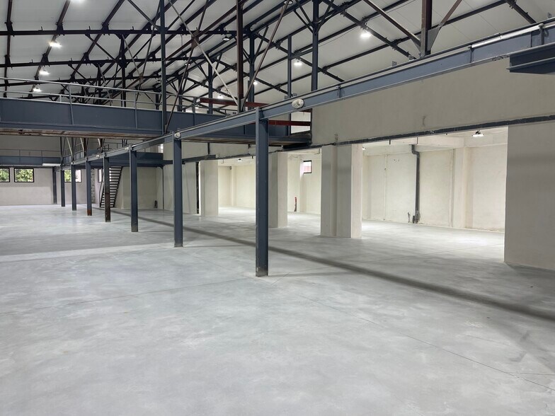 Dalle en béton armé 30cm, pouvant accueillir des activités industrielles, mezzannine de 400 m² avec possibilité d'augmenter la surface ainsi que d'équiper un monte-charges.