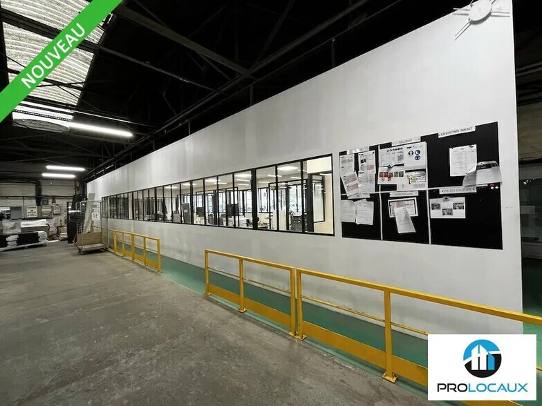 Prestations - équipements : - Surface Atelier/entrepôt d'environ 3000m2- Surface de bureaux/locaux sociaux d'environ 300m2- Blocs sanitaires- Structure parpaing ciment et bardage double peau- Dalle béton- Charpente métallique + bac acier- Portes sectionnelles (3x4m)- Hauteur sous charpente 4m- citerne gaz- Site clos- Accès Poids Lourds