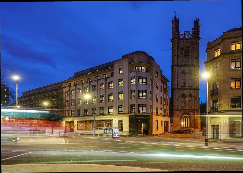St. Stephen's House offers high quality office space in a contemporary and creative open plan arrangement. The accommodation is available fully fitted and benefits from high quality furniture throughout across two principle levels with a mezzanine offering additional meeting room space. The lower ground floor offers additional office and meeting room space, including a large auditorium style seating area alongside the kitchen and breakout space. Access is via either Colston Avenue or St Stephen's Avenue.