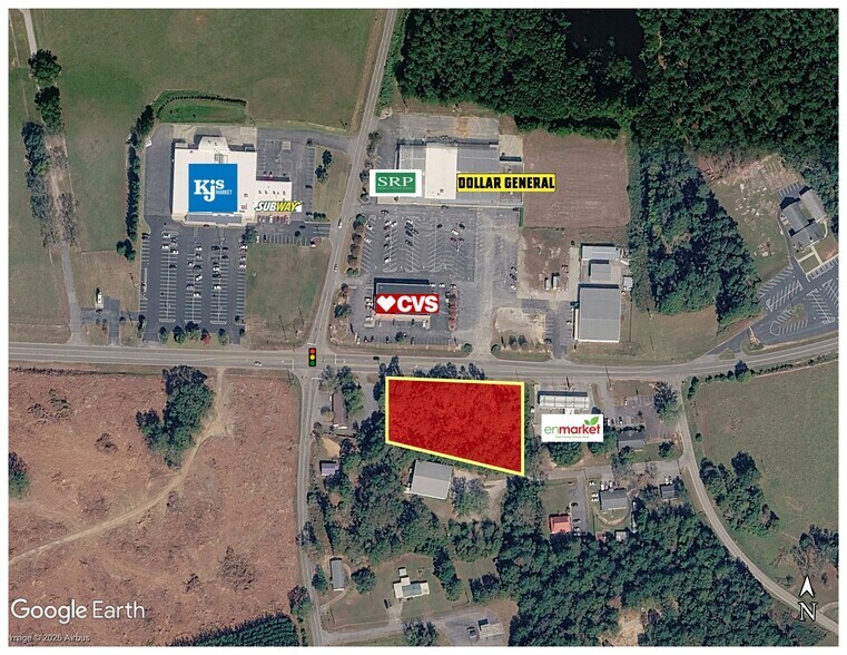 Prime commercial opportunity in Edgefield, SC with over 350 feet of frontage along Columbia Road, providing strong visibility and exposure for a variety of business uses. This ±1.49 acre parcel is zoned General Commercial (GC), allowing for a broad range of permitted uses including office, liquor store, mini-warehouse, medical, educational, and other commercial applications. The property benefits from proximity to national retailers including CVS and Dollar General, further supporting its position within an established commercial corridor.