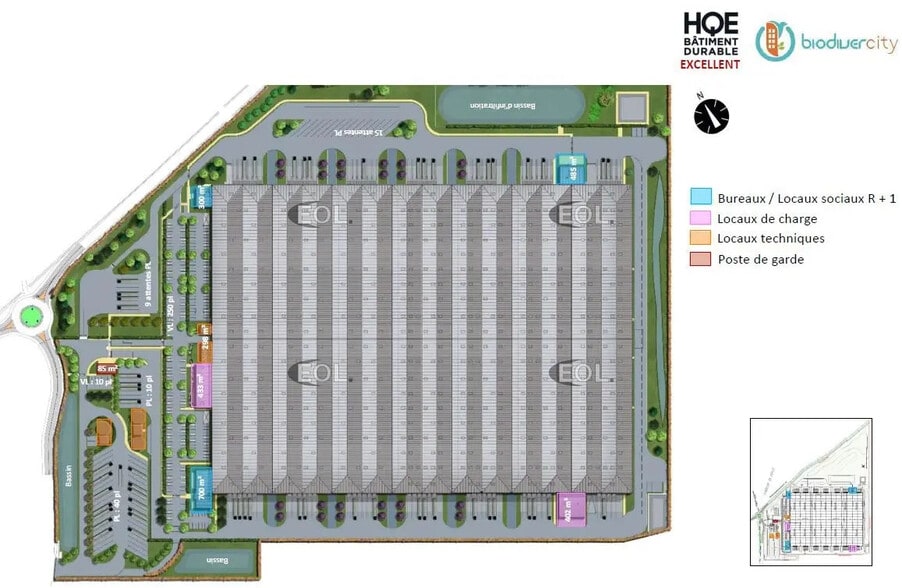 Ce projet logistique d’envergure est situé à Crisenoy, au cœur du pôle de Sénart, à proximité immédiate des autoroutes A5 et A104. Développé sur une surface totale de plus de 86 000 m², il propose un entrepôt neuf de classe A conçu pour répondre aux exigences des activités logistiques et industrielles de grande ampleur. Le bâtiment se compose de 14 cellules d’environ 6 000 m² chacune, offrant une grande flexibilité d’exploitation. L’entrepôt bénéficie d’une hauteur libre de 11,70 mètres, avec la possibilité d’atteindre jusqu’à 20 mètres, et dispose de 87 portes à quai facilitant les opérations de chargement et de déchargement. La dalle présente une charge admissible de 5 tonnes par mètre carré et le site est équipé de systèmes de sécurité complets incluant sprinklers et RIA. Les voiries lourdes permettent une circulation fluide des poids lourds sur l’ensemble du site. Implanté dans un environnement logistique stratégique, le site profite d’un accès routier exceptionnel et d’une excellente desserte régionale et nationale. Il s’inscrit dans une démarche environnementale ambitieuse avec les certifications HQE Excellent et Biodivercity. Les permis de construire et les autorisations ICPE sont obtenus, avec une livraison prévue environ quinze mois après accord.