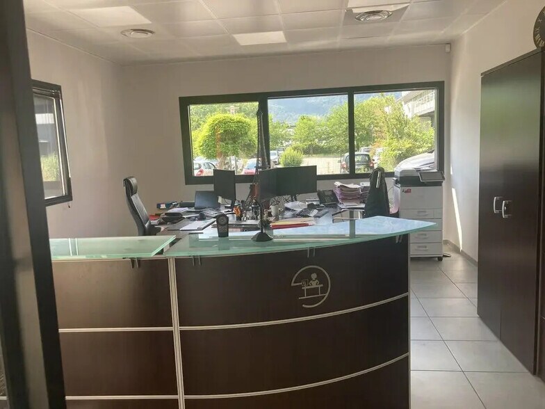 Prestations - équipements : Beau batiment récent, livré en 2020, encore sous assurance décennale. Atelier de 743m² + 210m² de bureaux, tout en rdcPrestations soignées, climatisation réversible dans les bureaux et l'atelier. Portes intérieures coulissantes automatiques. cloisons des bureaux vitrées avec stores. Toilettes et douches, dans la partie administrative et dans les vestiaires coté atelier.Dans l'atelier, 2 portes sectionnelles L3mxH3,5m motorisées. Eclairage Led. Parois intérieures alvéolées pour une meilleure isolation phonique. Mezzanine de 50m² pour stockage léger.Situation privilégiée à 50m de la sortie d'autoroute A41, et à 100m du portail principal d'entrée du site STMicroelectronics. Batiment à acheter avec location en cours. Libre sous 3-4 ans. Contacter Prolocaux pour toutes informations concernant le bail en cours.