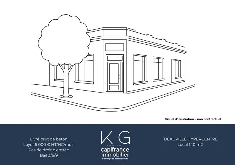 Deauville près de la place Morny, local de 140m2 au rez-de-chaussée à louer en coin de rue, idéal pour une boutique ou un cabinet professionnel Karole Gayet, conseillère immobilière commerciale et résidentielle indépendante du réseau Capifrance, propose cet espace à la location. Emplacement privilégié à Deauville, à quelques pas de la place Morny. Disponible immédiatement. Sur l'une des avenues les plus fréquentées de la ville, découvrez cette unité d'angle de 140 m², offrant une visibilité exceptionnelle et un potentiel commercial rare : elle est livrée en coque, prête à être aménagée selon votre concept. Hauts plafonds et double accès au rez-de-chaussée : tout est réuni pour créer un espace à l'image de votre marque. L'unité bénéficie déjà d'un aménagement partiel des bureaux, facilement reconfigurable. Il convient parfaitement à de nombreuses utilisations, notamment : - boutique premium/concept store, - salon de coiffure/salon de coiffure/salon de beauté, - restaurant/café/petit restaurant (extraction externe possible), - agence d'assurance/courtier/banque, - agence immobilière/showroom, - cabinet médical ou paramédical (soumis à autorisation).
