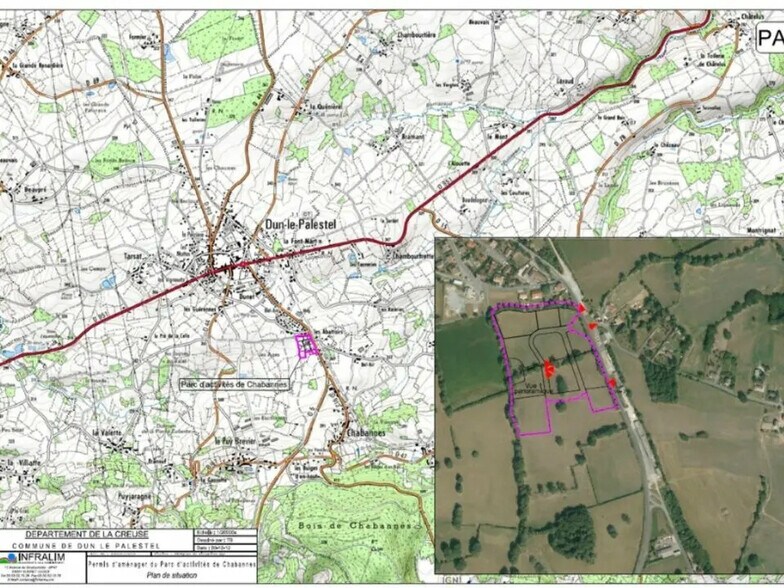 Terrains à vendre à Dun-le-Palestel dans le parc d'activités de Chabannes. Divisibles dès 1 000 m², ces lots sont proposés à un tarif attractif de 5Euros HT/m². Idéal pour le développement d'activités artisanales et commerciales, chaque lot est pré-aménagé avec viabilisation et connectivité optimale, incluant la fibre optique. Excellente accessibilité via routes principales et à proximité de grandes villes comme Limoges.