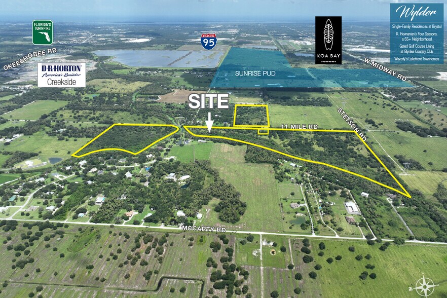 An exceptional opportunity to acquire 98.5 acres in Fort Pierce, FL, located east of I-95 between Eleven Mile Rd and McCarty Rd. Zoned AG-2.5 (Agricultural-2.5), it allows for agricultural operations, rural residential use, and potential future development subject to approvals. Positioned in a rapidly growing area, the property benefits from proximity to major transportation routes, including I-95, with convenient access to the broader Treasure Coast region.