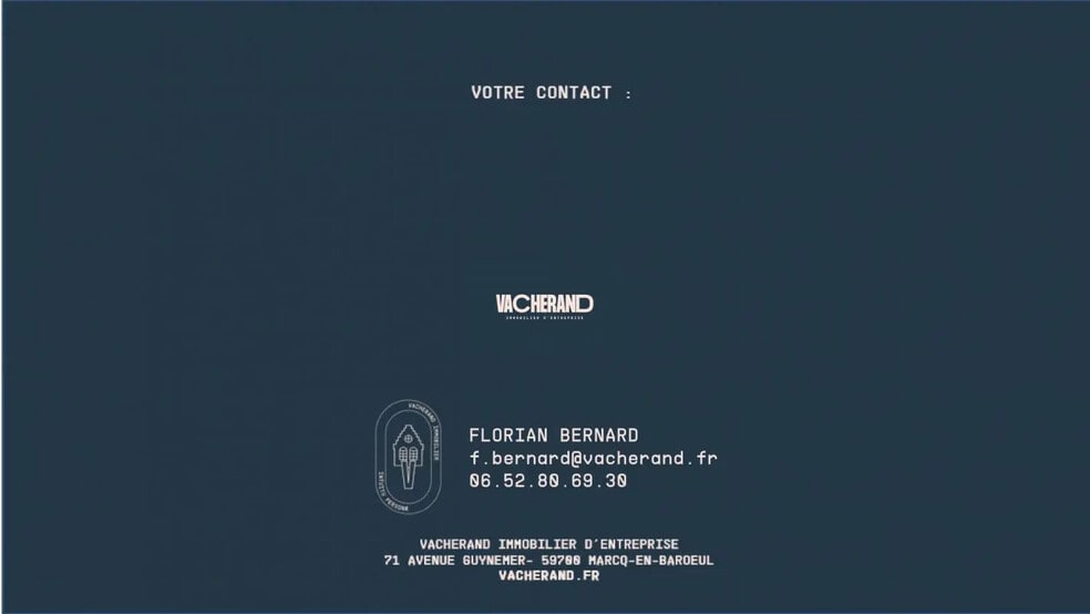 Votre agence Vacherand immobilier entreprise vous propose à la location un bâtiment neuf de 290m² environ de bureaux avec une terrasse pour chaque niveau à Feignies. A proximité de Menissez, MCA, Lorban et à 5mn d'Auchan Louvroil Disponibilité : 9 mois après signature du contrat Place de parking : 350€ HT/unité/an Surface : 290 m² environ Loyer : 3588 € / mois HT HC Honoraires à la charge du locataire : 6458 € HT Dépôt de garantie : 10763 € HT