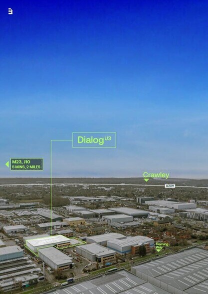 Located along Fleming Way, this prominent unit sits in the middle of Manor Royal which is well established as the prime logistics/industrial area of the Gatwick Diamond. Access to the southern perimeter road of Gatwick Airport is within 1 mile, Junction 10 of the M23 motorway is 2 miles away.