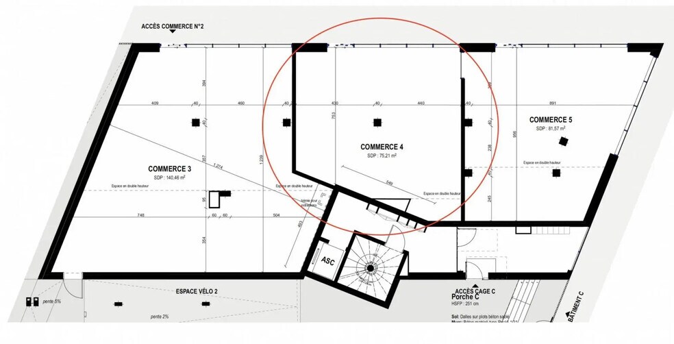 | Surface du lot | 75 m² | Usage du lot en coprop. | Local commercial |