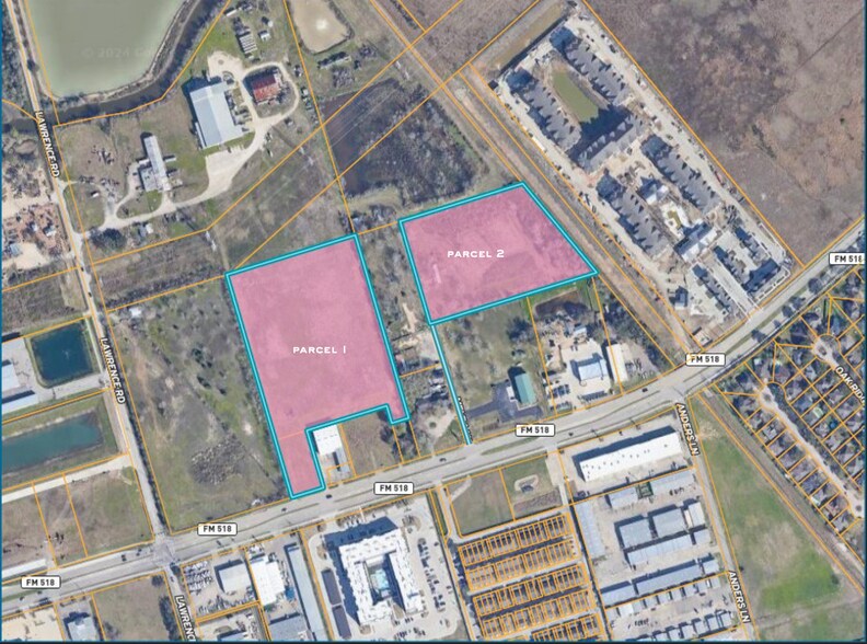 13.35 AC infill site | NEC FM 518 & Lawrence Rd, Kemah TX | 2 parcels, available separately or combined | No zoning | 2 direct FM 518 access points | Phase I & geotech complete | Near Hwy 146