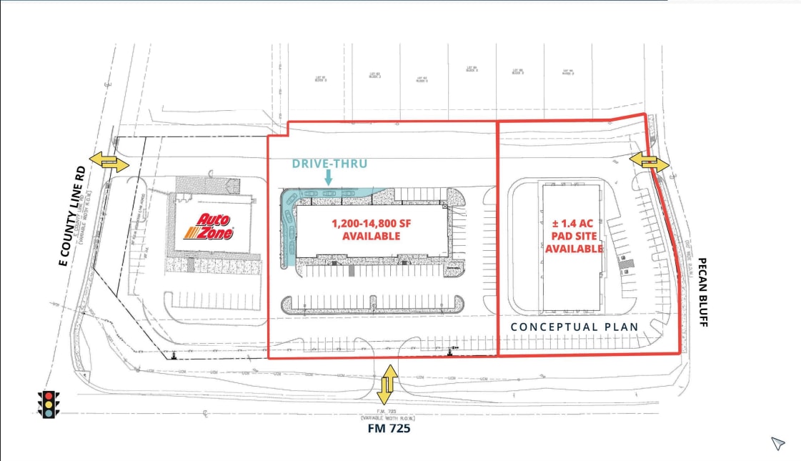 Pecan Crossing FM 725 and County Line Local commercial | 111–1 375 m² | À louer | New Braunfels, TX 78130
