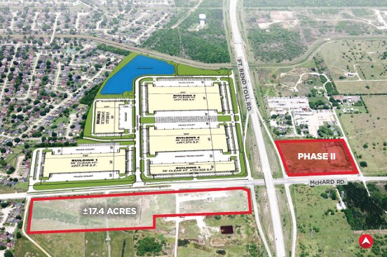• Façade de ±300 pieds le long de Fort. Bend Toll Rd. frontage Rd. et ± 2 000 pieds de façade le long du chemin McHard.