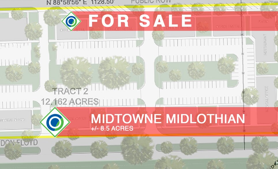 Dernière grande superficie commerciale disponible à MidTowne Midlothian. Cette superficie sera de +/- 8,26 acres après la construction des routes.