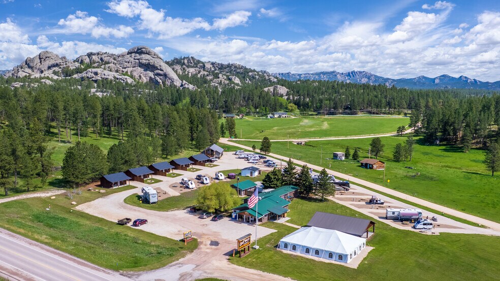 ***NEW LISTING*** Gold Valley Camp is Custer's newest AND oldest campground . . . a wonderful camping destination located just half a mile from the west entrance to Custer State Park and only 3 miles from the town of Custer, in the scenic Black Hills of South Dakota. On 4.5 acres, this historic site, where General Custer and the 7th Cavalry discovered gold in 1874, offers a blend of rich history and natural beauty. Its strategic location near iconic landmarks like Mount Rushmore (21 miles), Crazy Horse Memorial (7 miles), and Stockade Lake (1/2 mile) make it an ideal choice for history buffs and outdoor enthusiasts. It's even right next to the Mickelson Trail for convenient hiking and biking. Gold Valley Camp has 20 NEW spacious, 20/30/50 AMP all-gravel RV sites - no dead grass - with all-new water and sewer lines. A shower house and dump station, 6 new fully-equipped deluxe cabins, all with A/C and heat. Plus a new pavilion and event tent! A full commercial kitchen is still in place for potential additional income, as well as a 1-barrel nano-brewery! New laundry/garage with bathroom (and loft cabin), new well and water station with chlorinator. New large septic system, several more on site, borders USFS lands, captive audience to all the traffic coming and going from Custer and Custer State Park. Custer has tons of services, including a: new hospital tied to the Mayo Clinic, county seat, K-12 school, great amenities, restaurants, and shops. SD has no state income tax and is very pro-business. GVC is distinguished by a comprehensive branding strategy, which includes a professional website, strong visibility on Google & Facebook, and active membership in relevant industry organizations and campground app affiliations.