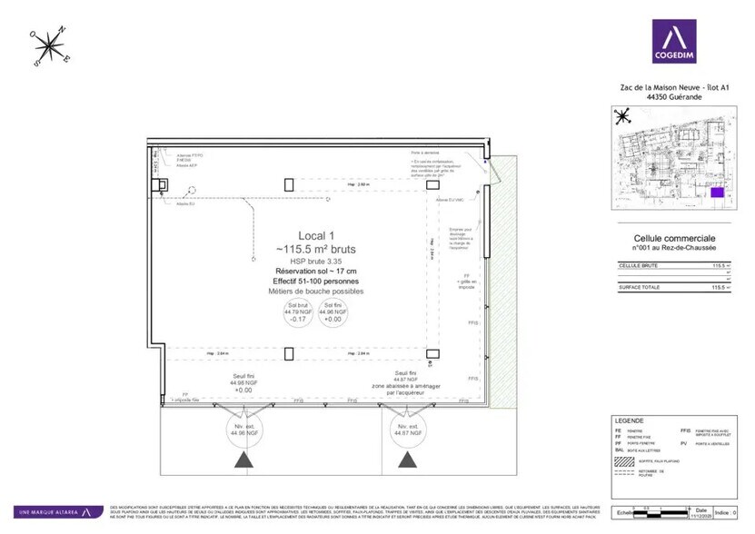 44350 Guérande Local commercial | 115-120 m² | 181 000 €-187 000 € par lot | À vendre