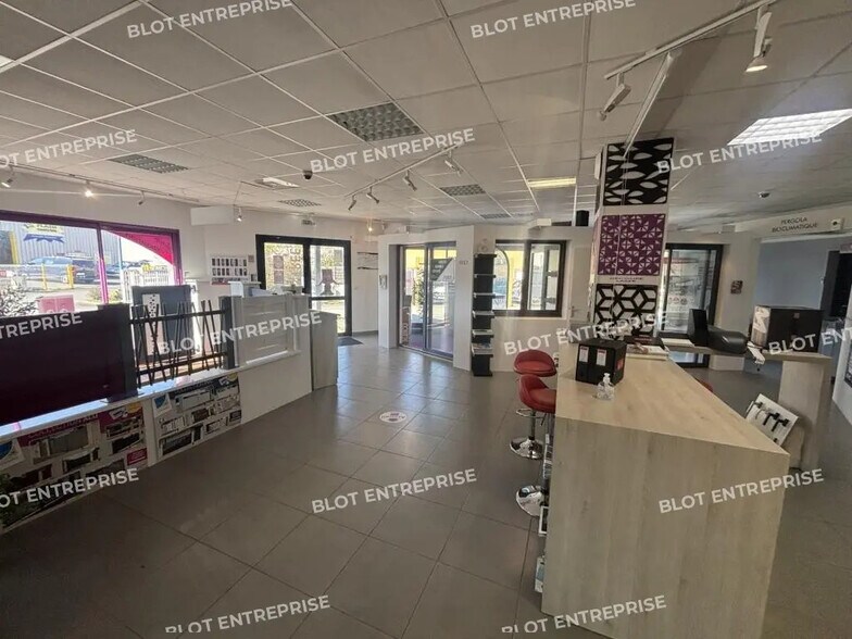 Le bâtiment se compose d'environ 200 m² de showroom avec une belle vitrine, environ 240 m² de bureaux répartis sur deux niveaux (RDC et R+1) et environ 1 020 m² d'atelier / stockage.