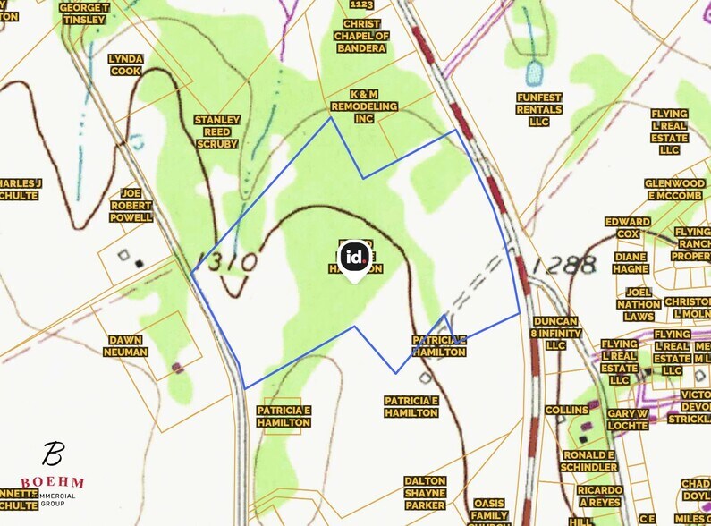 Boehm Commercial Group is pleased to bring to market unrestricted 39.79± Acres Hwy 173, Bandera, TX 78003. This mostly level Hill Country tract delivers wide-open views and strong road presence. Buyers can pursue a range of uses, from a private homestead to a future development site. The property offers approximately 1,200± feet of frontage on Hwy 173. It also includes about 750± feet of frontage along Old Hondo Road. This layout supports flexible access and site planning. The land sits directly across from the Flying L Ranch Resort, a major area destination, which is serviced by Yancey Water Supply Corporation. Much of the cedar has already been cleared, while mature hardwoods remain. The tract sits just minutes from downtown Bandera and nearby services. Local anchors include Dollar General, Alkek Elementary, and the Bandera Masonic Lodge, plus several churches. This site fits a homestead, recreational ranch, business use, or an RV or mobile home park.