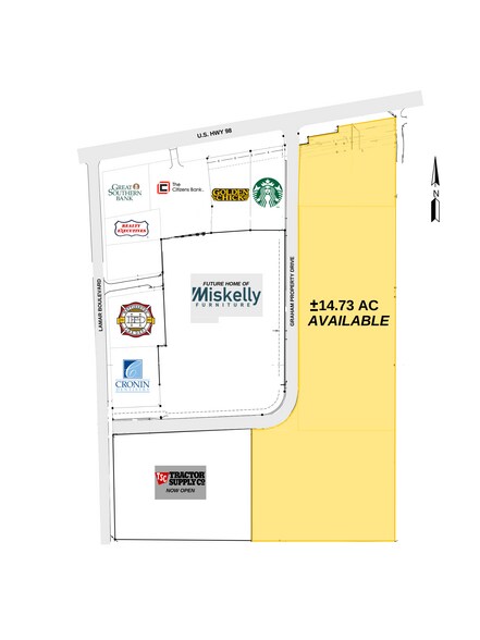 Terrain de (+/-) 1 à 14 acres situé au SEC du boulevard Lamar et de l'autoroute 98, le principal corridor commercial de la ville. L'université du Mississippi du Sud (13 110 inscriptions, automne 2023) se trouve à moins de 3 miles. Le centre des opérations hypothécaires de 60 000 pieds carrés de la Regions Bank se trouve à moins de 1,6 km.