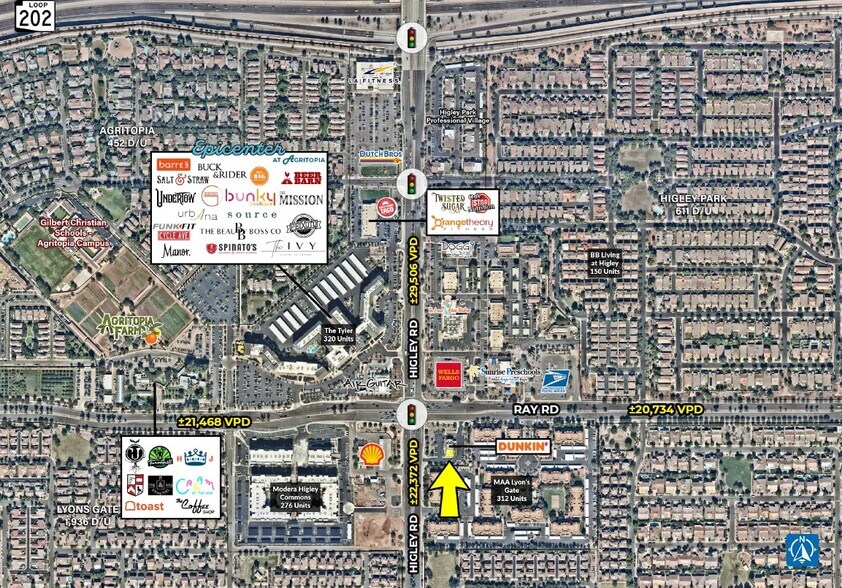 Excellent visibility along the “going-to-work” side of Higley Rd, with more than 51,000 cars passing the site daily. • Strong demographics, with over 120,000 residents within 3 miles, median household incomes of approximately $160,337, and a robust daytime population of ±99,873.