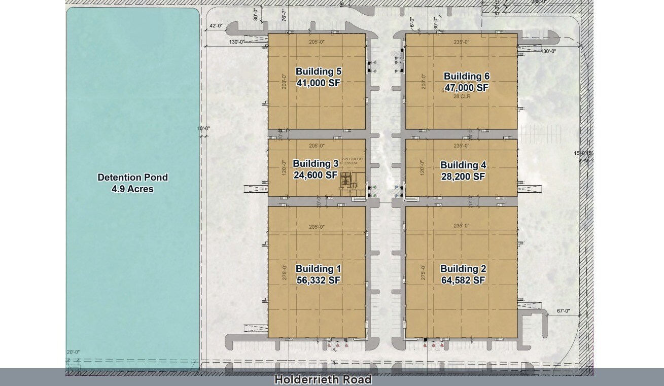Grand Parkway Industrial Center introduces a premier industrial business park in Tomball, TX, designed for modern distribution and logistics operations. This development features six freestanding, single-tenant buildings ranging from ±24,600 SF to ±64,582 SF, offering flexibility for businesses seeking efficient layouts and tailored office build-outs. Each building is constructed with durable tilt-wall panels and equipped with dock-high loading doors complemented by ramps for seamless freight handling. With clear heights from 28’ to 32’, ESFR sprinkler systems, and robust 3-phase, 480-volt power, these facilities meet the demands of high-volume storage and advanced manufacturing. Rear-load configurations and ample car parking enhance operational flow, while outside storage areas provide additional utility for tenants requiring yard space. Located near Grand Parkway and Holderrieth Road, the park offers exceptional connectivity to Houston’s major thoroughfares, ensuring rapid access to regional and interstate markets. Delivering between Q4 2026 and Q1 2027, Grand Parkway Industrial Center positions tenants at the heart of a thriving economic corridor with proximity to skilled labor, growing residential communities, and key distribution routes. This is an ideal opportunity for companies seeking a strategic foothold in Greater Houston’s expanding industrial landscape.