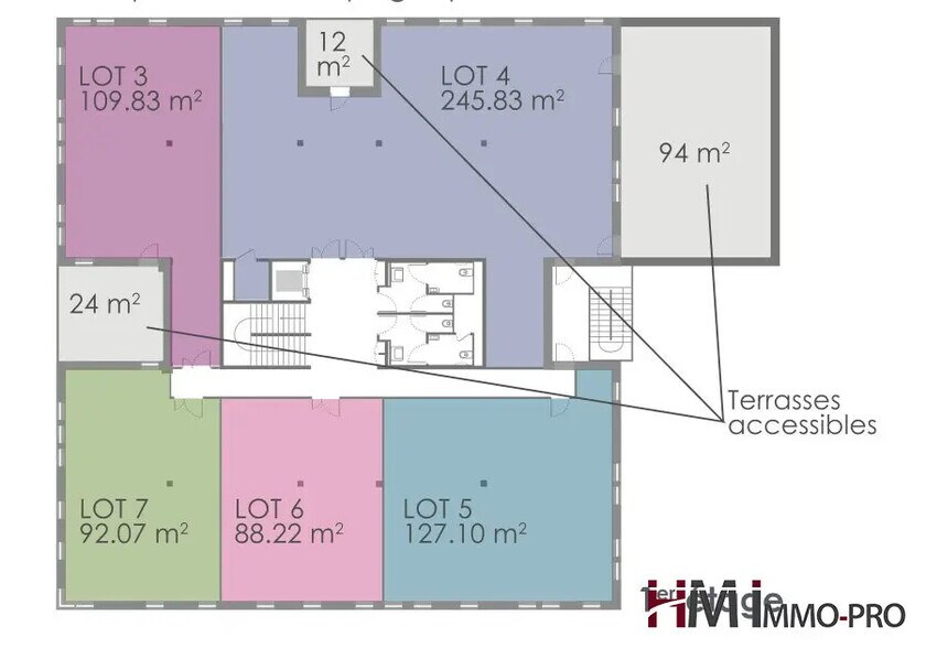 électriques. Les espaces verts seront arborés et bénéficieront de plusieurs traitements paysagers en harmonie avec les essences locales. Chaque étage est également doté de terrasses privatives de 12 à 94 m², offrant un espace extérieur unique pour le bien-être et le confort des équipes.