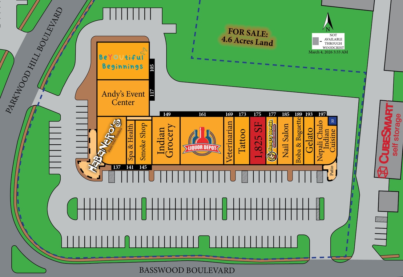 Park Glen Summit est un centre commercial de quartier d'environ 36 000 pieds carrés. La propriété est située dans le quadrant nord-ouest de l'autoroute 377 et du boulevard Basswood. Le Park Glen Summit est situé à côté de l'entrée du complexe résidentiel Summerfields, qui fait partie de la plus grande association de quartier du comté de Tarrant. L'autoroute 377 et le boulevard Basswood sont toutes deux des artères principales pour les résidents voyageant à destination et en provenance de l'I-820 et de l'I-35. Les suites commerciales de ce centre sont disponibles à la location pour tout, des vitrines traditionnelles aux restaurants, en passant par les bureaux, les fournisseurs de services médicaux ou autres prestataires de services professionnels. Woodcrest Capital accueille les nouvelles entreprises et les entreprises franchisées dans ses centres avec des baux faciles à lire et des conditions flexibles. Woodcrest est également suffisamment sophistiqué pour plaire aux plus grands locataires du crédit national. Entreprise familiale spécialisée dans l'immobilier commercial depuis plus de 40 ans, Woodcrest possède et exploite tout, des centres de classe A situés dans les quartiers les plus fréquentés aux centres en difficulté qu'elle réhabilite dans des communautés rurales en difficulté. Appelez-nous dès aujourd'hui pour trouver le bon emplacement pour votre entreprise, car nous avons généralement plusieurs opportunités de vente au détail dans les environs immédiats !