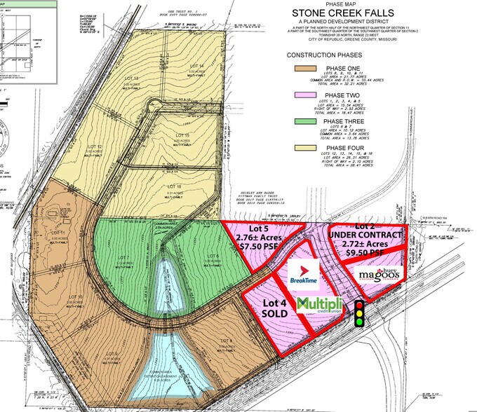 Le développement intégrera le réalignement de l'intersection entre l'US Hwy 60 et la State Hwy MM, ce qui permettra de comptabiliser jusqu'à 55 000 voitures par jour. Les lots comporteront des lacs artificiels dotés de fontaines et de sentiers. Présenté par la même équipe de développement qui a construit Golden Pond, Old Stone et 60 West, ce projet créera des emplois et des logements dans la ville de Republic. Les lots commerciaux varient de 2,5 à 4,07 ± acres. Les lots individuels sont vendus entre 7,50$ et 10,00$ PSF. Des prix réduits sont disponibles pour plusieurs lots. Contactez l'agent d'inscription pour plus d'informations.