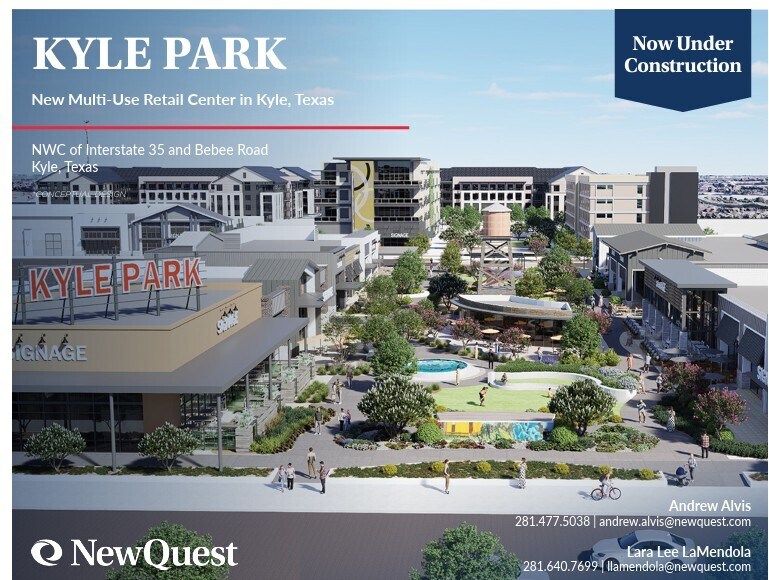 Kyle Town Center, un nouveau développement qui sera bientôt disponible à Kyle, au Texas. Situé à l'angle nord-ouest de l'Interstate 35 et de Bebee Road.