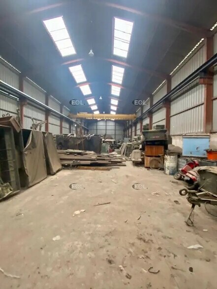 Bâtiment rectangulaire sans pilier avec une hauteur sous plafond importante (9,5 m) permettant une optimisation de la surface de stockage intérieure et équipé d'un pont roulant 7t.