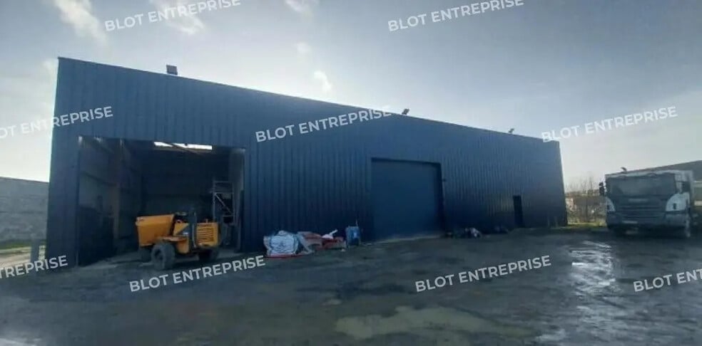 - 300 m² d'atelier et de stockage bardage bac acier, équipés d'une porte sectionnelle.