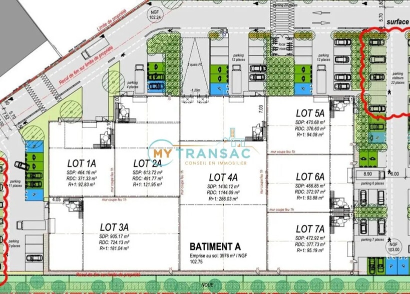 My Transac vous propose à la location des locaux neufs de 464 m² jusqu'à 19 451 m² sur la commune de La Queue-en-Brie. Prestations activités : Hauteur sous poutre : 8 m Résistance sol : 3 T/m² Porte sectionnelles (22) et quais (14) en fonctions des cellules Photovoltaïque en toiture Voirie lourde Structure métallique Couverture : Bac acier Bardage double peau isolé Chauffage pour maintien hors gel Eclairage entrepôt : LED + skydome en toiture Tarif jaune (990 kVa pour le bâtiment + triphasé) Parkings : 253 places dont 22 PMR Prestations bureaux : Plinthes électriques PVC Climatisation double-flux Plateaux open space Faux plafonds Hauteur sous plafond 2,7m Conditions financières : Loyer : 130 Euros/m²/an/HT/HC Dépôt de garantie : 3 mois de loyer HT HC Honoraires de commercialisation : 15% HT d'une année de loyer HT/HC Accès : Autoroute A104 (sortie 17a/17b), A4 / N19 / D4 / N4