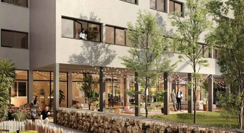 Vente de murs libres d'un local commercial de 136 m² situé sur la commune de La Rochelle, livré brut de béton avec les vitrines posées et sans extraction avec 2 places de parking, dans une résidence de coliving composée de 181 lots proposés à la colocation de 5 personnes.