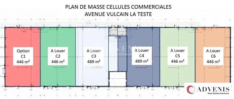 Advenis Bordeaux vous propose à la location, un programme commercial NEUF d'environ 2 850 m² en plein coeur de la zone commerciale de La Teste. Plusieurs cellules commerciales allant de 446 m² à 489 m² environ, disponibles immédiatement pour une activité de commerces, loisirs, services à la personne ou restauration. Avenue au flux de véhicules très important, emplacement fort. Livraison dernier trimestre 2024 - Type de bail : Commercial - Durée : 3/6/9 ans - Fiscalité : TVA - Indice : ILC - Indexation : Annuelle - Dépôt de garantie : 3 mois - Loyers et charges : Trimestriels et d'avance