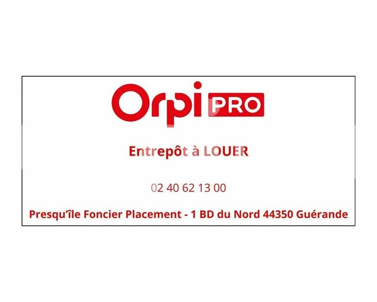 Orpi PRO vous propose à la location un entrepôt d'une superficie de 100m² disponible à la location sur la commune de La Turballe. Ce local est brut de béton et comprend : - Un espace Atelier - Un sanitaire - une porte sectionnelle
