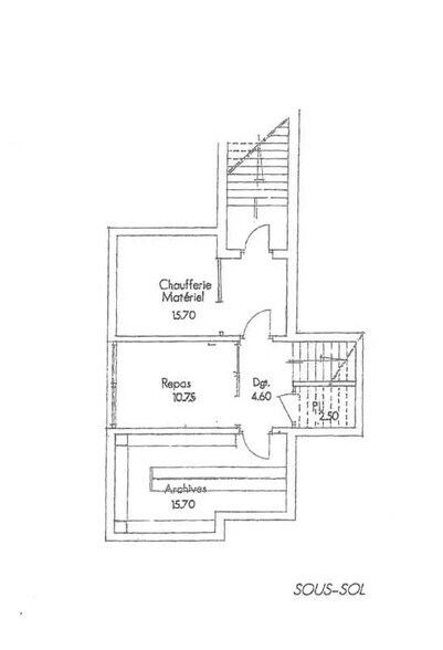 . Sous-sol avec entrée par l'extérieur : chaufferie, coin repas avec meuble évier, local archives