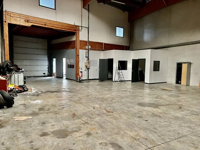 Le local dispose de deux portes sectionnelles motorisées, une belle hauteur sous poutres ainsi que plusieurs parties de stockage séparées en atelier, stockage léger et stockage lourd avec la possibilité de réunir les trois en un seul grand espace