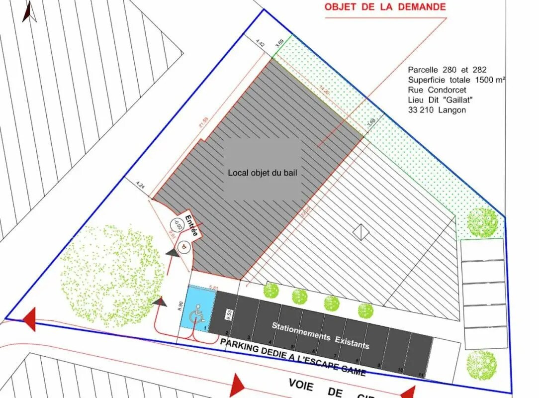 RES GROUP vous propose à la location sur la commune de Langon, situé à un emplacement recherché proche des principaux axes routiers et notamment la A62 et N524, ce local commercial de 300 m² avec vitrine et stationnement extérieur, il est situé à proximité des enseignes MaxiZoo, V&B, So Bio, GiFi, La Halle, Le Marché de Léopold, Inova Cuisine. Possibilité de privatisation d'un espace extérieur. Disponibilité à convenir entre les parties - Type de bail : Commercial - Durée : 6/9/10 ans - Préavis : 6 mois - Fiscalité : TVA - Indice : ILC - Indexation : Annuelle, date prise effet - Dépôt de garantie : 3 mois HT - Loyers et charges : Trimestriels et d'avance - Accès gros porteur - Accès Handicapés - Climatisation réversible - Etablissement recevant du public - Façade bardage double peau - Faux plafond - Immeuble indépendant - Luminaires faux plafond - Menuiseries posées - Parking Extérieur - Porte sectionnelle - Rez-de-chaussée - Sanitaires privés - Skydome - Terrain bitumé - Vitrine
