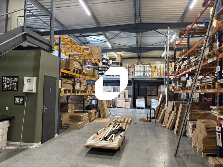 La partie entrepôt bénéficie d'une porte sectionnelle électrique, d'une hauteur libre de 6 mètres permettant le rackage, d'un sanitaire, et d'un accès adapté aux poids lourds. La partie bureaux, répartie sur deux niveaux, comprend des bureaux cloisonnés, des espaces open-space, un espace cuisine, un local technique et deux sanitaires. Le bien est complété par une superbe terrasse, une cour privative, ainsi qu'une possibilité de stockage extérieur à l'avant du bâtiment. Possibilité de stationner sur la parcelle.