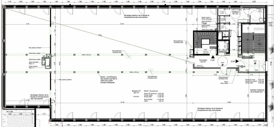 Prestations - équipements : A vendre, Bureaux d'une surface de 549 m² divisible à partir de 265 m²Plateaux semi équipés selon descriptif promoteurBase brute avec compléments d'aménagementFluides en attenteAccès PMR.Sanitaires communs équipésFinition exacte à confirmer par notice promoteur lot par lot