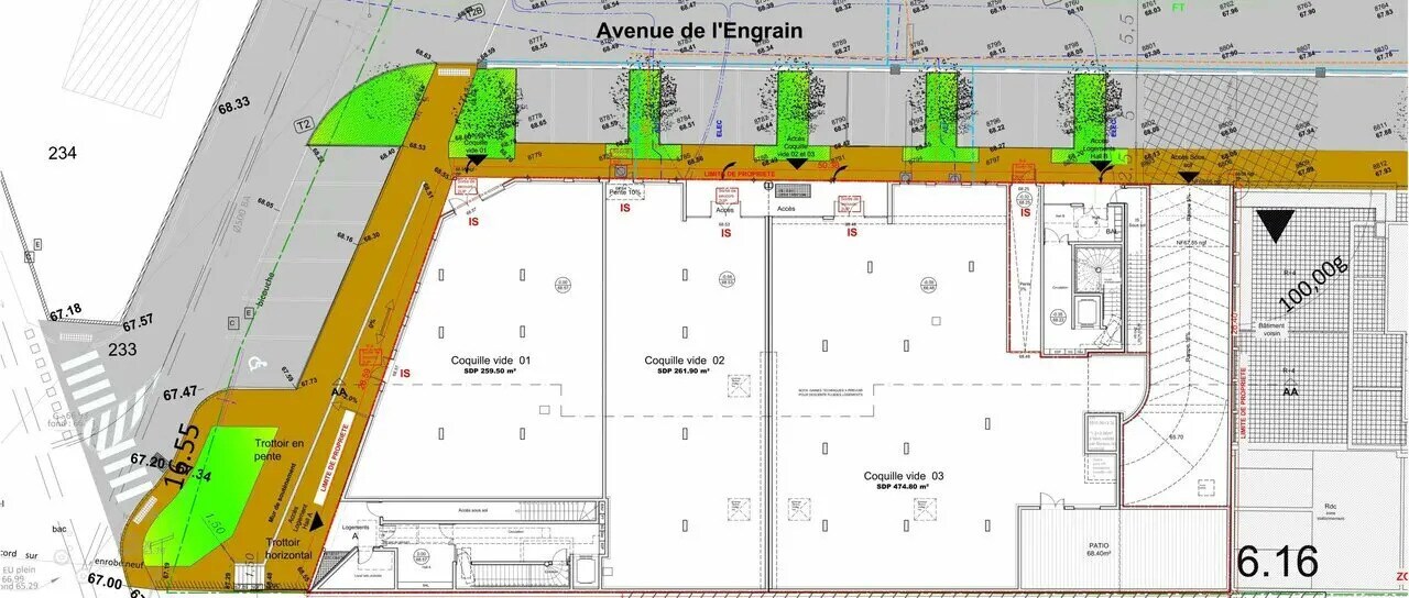 Local commercial à louer en pied d'immeuble d'un programme neuf de 35 logements en R+4 sur la commune des Angles 30133. Brut de béton fluides en attente, huisseries fournies. - lot 2 : 261,90 m2 avec 2 entrées. - Type de bail : Commercial - Durée : 3/6/9 ans - Préavis : 6 mois - Fiscalité : TVA - Indice : ILC - Indexation : Annuelle, date prise effet - Dépôt de garantie : 3 mois - Loyers et charges : Trimestriels et d'avance