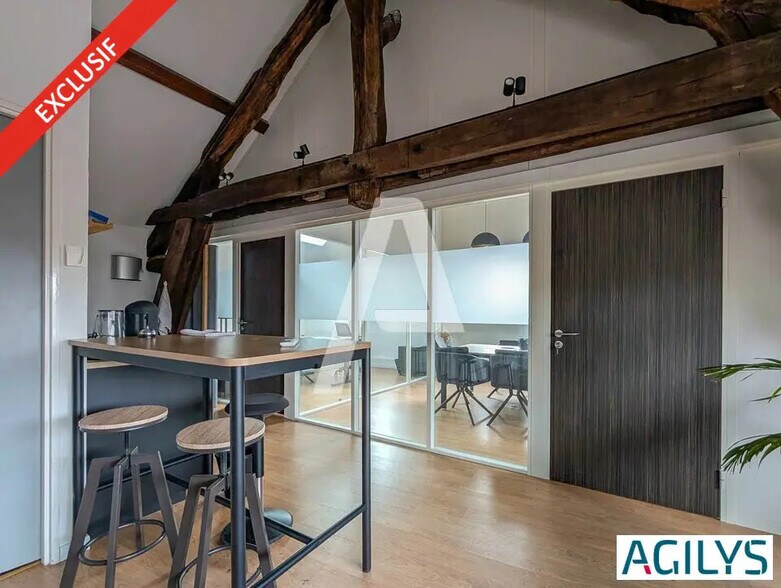 ECLUSIVITE AGILYS Situés au coeur de la zone la plus recherchée de Courtaboeuf aux Ulis, proche de nombreux points de restauration, ces bureaux offrent un cadre de travail à la fois élégant et fonctionnel. Dans un bâtiment de caractère avec poutres apparentes et belle hauteur sous plafond, ils bénéficient d'une luminosité naturelle exceptionnelle, prêts à accueillir votre activité dans un environnement professionnel de qualité. Loyer parkings inclus - Type de bail : Commercial - Durée : 3/6/9 ans - Fiscalité : TVA - Indice : ILAT - Indexation : Annuelle - Dépôt de garantie : 3 mois - Loyers et charges : Trimestriels et d'avance Locaux atypiques avec prestations de qualité Belle hauteur sous plafond Charpente apparente Open space lumineux, salle de réunion équipée Espace détente, coin cuisine entièrement équipé Climatisation réversible Sanitaires privatifs Parking privé : 4 places Restauration à proximité immédiate Bureaux clés en main, loués avec le mobilier: Table de réunion Bureaux et sièges ergonomiques Bench 10 postes Fauteuils, canapé, tables basse Ecran et TV Cuisine équipée Imprimante Meubles de rangement