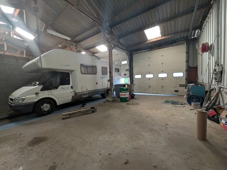 Prestations - équipements : Terrain de 5000m² cloturé 3 locaux de 200m² environ fosse pour PL dans l'un des locaux bureaux de 50m²1 garage de 50m² environ HSP 6m Toiture fibro Bardage simple peau Idéal pour un artisan ou une activité de stockage