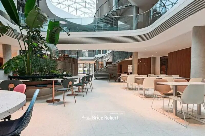 Cet espace situé au deuxième étage bénéficie d’une luminosité optimale grâce à ses larges ouvertures et son aménagement en open space. Il offre un cadre de travail moderne et fonctionnel, idéal pour des équipes souhaitant évoluer dans un environnement dynamique. Les prestations incluent la climatisation, un faux plancher technique et une hauteur sous plafond confortable, garantissant un excellent confort. L’accès est sécurisé et des services complémentaires tels que conciergerie et restauration sont disponibles dans l’immeuble.