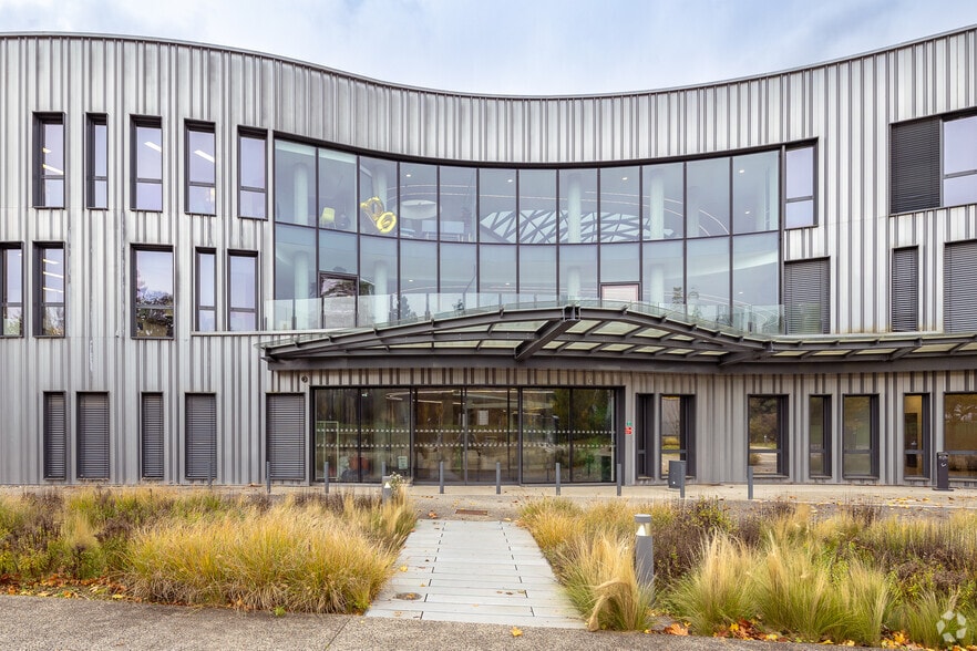 L’immeuble tertiaire dans lequel ces bureaux sont situés s’inscrit dans un environnement verdoyant au cœur d’un pôle économique dynamique. Il repose sur un terrain clos et arboré de 1,4 hectare, et intègre des services mutualisés tels qu’un restaurant inter-entreprises, un PC sécurité actif de 6h30 à 20h45, ainsi qu’un gardien présent de 7h à 19h. La trame de façade de 1,35 m et les protections solaires renforcent le confort et l’efficacité énergétique du bâtiment.