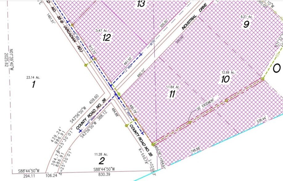 11.28 AC Industrial Development Lot available for purchase. Lot Size: 704x830xTBD (pie shaped). Sewer Available, Water Available, Cable Not to Property, Electric Not to Property, Natural Gas Not to Property.